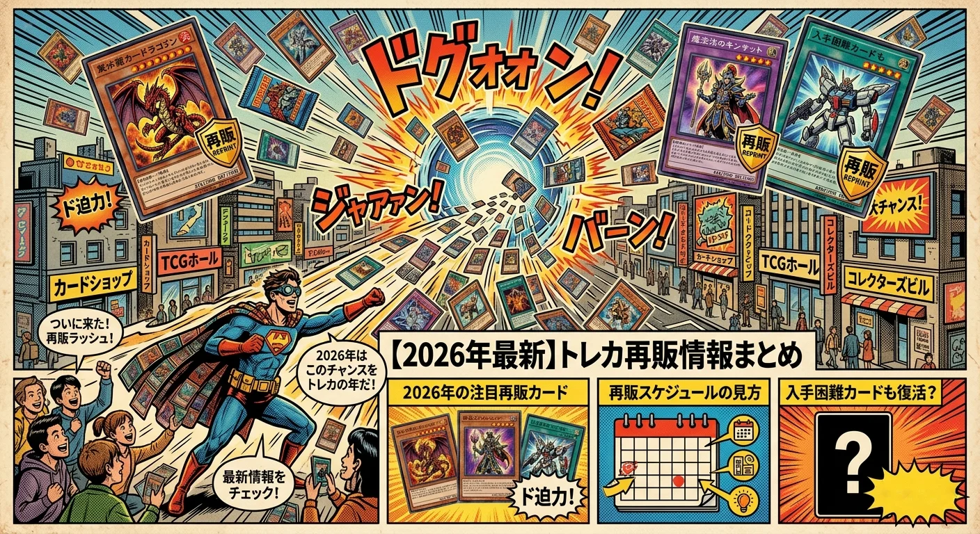発売日に店に走ったのに、もう棚が空だった。そんな経験、一度はあるはずだ。ポケモンカード、遊戯王、ワンピースカード——2026年のトレカ市場はまだ加熱が止まらない。再販情報を知っているかどうかで、定価で買えるかプレミア価格を払うかが完全に分かれる。