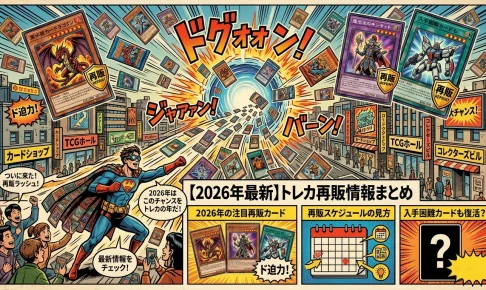未分類 【2026年最新】トレカ再販情報まとめ|ポケカ・遊戯王・ワンピース・DBF 予約開始日・発売日・プレミア度一覧 2026.04.15 snicker Kitamura 「また売り切れてた…」 発売日に店に走ったのに、もう棚が空だった。そんな経験、一度はあるはずだ。ポケモンカード、遊戯王、ワンピースカード——2026年のトレカ市場はまだ加熱が止まらない。再販情報を知っているかどうかで、定…