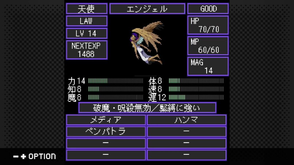 | 育成・ステータス割り振り | 仲魔もレベルアップ。力・知・魔・体・速・運を自由に振れる |