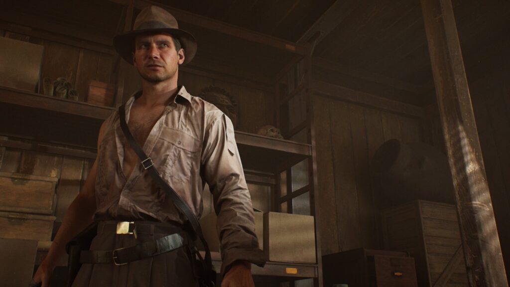 『レイダース/失われたアーク』と『最後の聖戦』の間の時期を舞台に、ジョーンズ博士として世界各地を巡る冒険が描かれる。1人称視点で展開されるストーリードリブンのリニアなゲーム設計に、広大なワイドリニア探索エリアが組み合わさった独特の構造が本作の骨格だ。