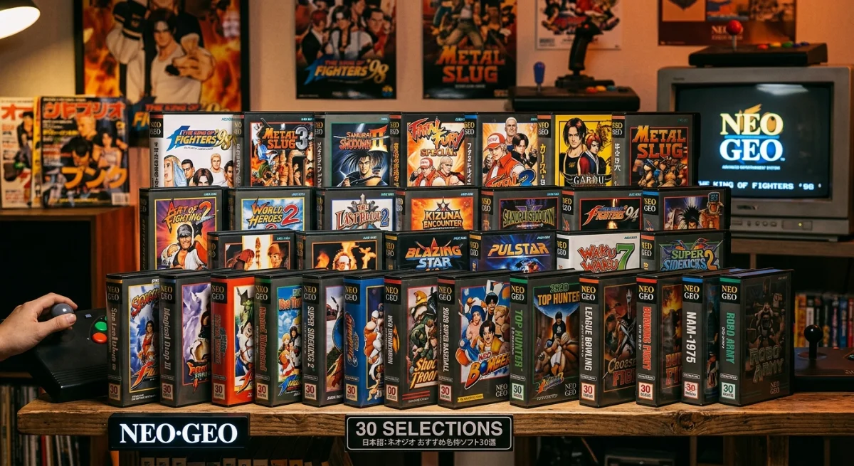 本記事では、格闘・アクション・シューティング・スポーツなど全ジャンルから、ネオジオを代表する名作30本をジャンル別に厳選して紹介する。自分の好みに合った1本を見つける道標として使ってほしい。