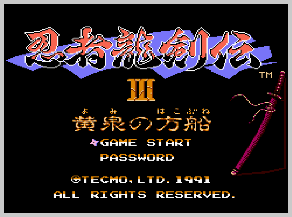 | 忍者龍剣伝III 黄泉の方船(本作) | FC実機・中古カセットのみ(NSO未収録) | コンソールアーカイブスでの配信に期待。IおよびIIから三部作を順に体験するのがおすすめ |