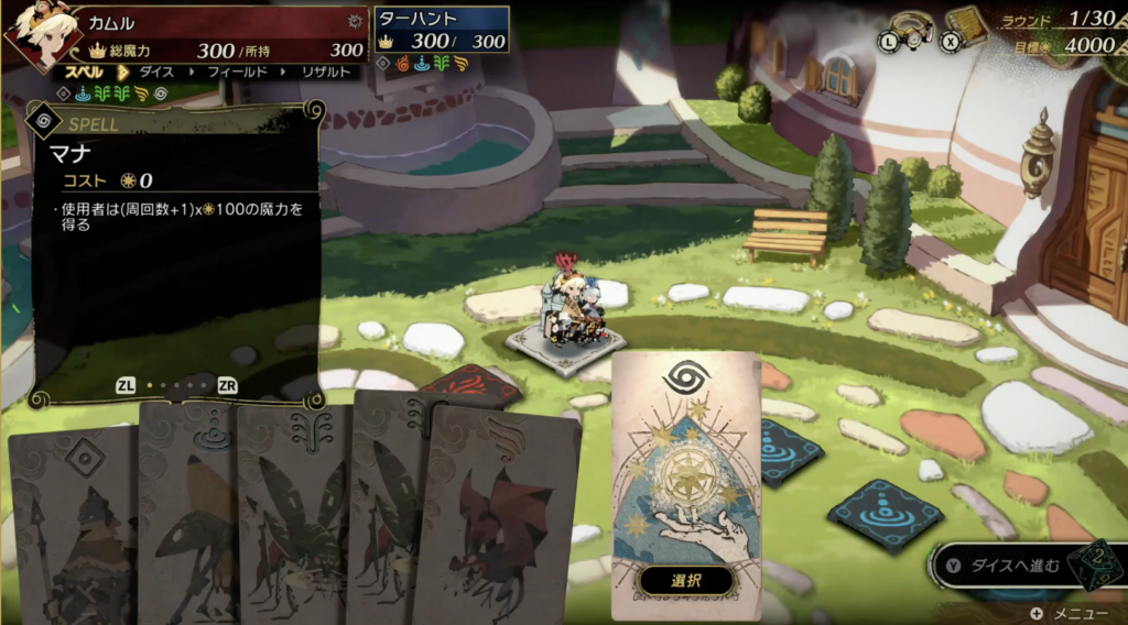 カルドセプトのシステムを知らない人のために、まず基本を押さえておこう。ルール自体はシンプルだ。ダイスを振ってボード上を進み、止まったマスに領地を建てる。対戦相手の領地に止まると通行料を払う。一定の魔力を集めてゴールに到達した者が勝者となる。