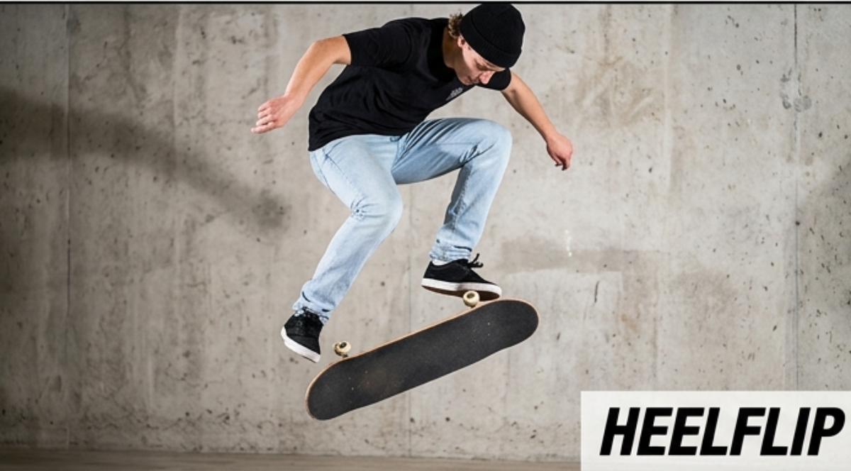 ヒールフリップはボードをかかと側に蹴り出して縦にフリップさせるトリック。キックフリップよりもボードの軌道が身体から外側に流れるため、視覚的にダイナミックに見える。そしてなぜか、ヒールフリップを得意とするスケーターはほぼ例外なく「スタイルがいい」と言われる傾向がある。